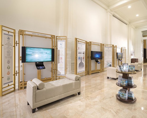 Designed as an open-door informational meeting spot, the Information Centre features a full biographical display illuminating the extraordinary life and legacy of Scientology Founder L. Ron Hubbard—from his childhood to his career as an author before the advent of Dianetics and Scientology, as well as his revolutionary body of work in establishing and defining the religion itself.
