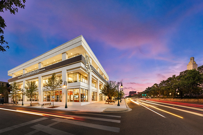 Austin’s magnificent new Church stands directly across the street from the University of Texas, on The Drag, where as many as 70,000 walk the bustling stretch every day. Starting today, the Church’s street-level, floor-to-ceiling windows invite passers-by to come in, look, listen and get a taste of Texas Spiritual Freedom.