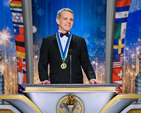 Many more tales unfolded, led by the stars of this bright and dynamic night. Namely, three IAS Freedom Medal Winners, who each epitomize relentless progress toward the goals of the religion everywhere for a peaceful, productive and crime-free world, where social justice prevails. As Mr. Miscavige introduced them one by one, a common ethic of work, courage, persistence and dedication were evident in their stories: