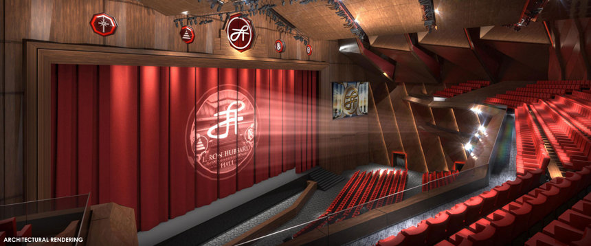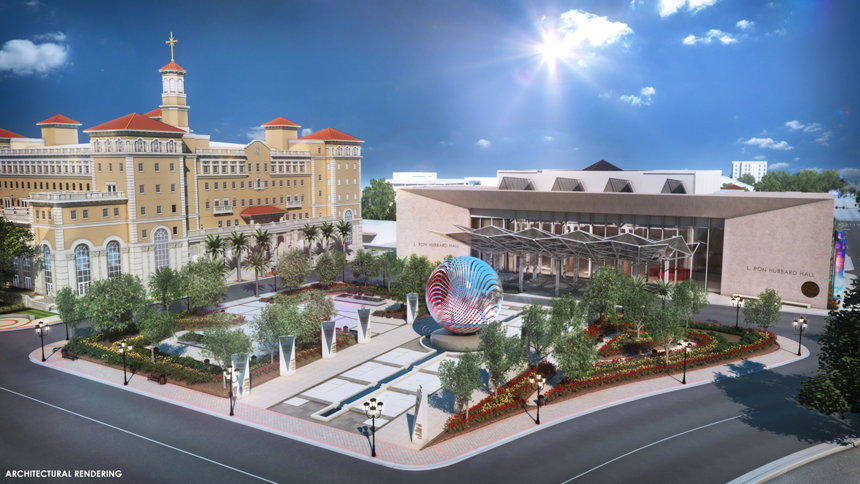 There was also the momentous announcement of the future L. Ron Hubbard Hall in Clearwater, a magnificent auditorium designed to seat thousands with convention and banquet conversion capability, complemented by a beautifully-appointed L. Ron Hubbard Park. The sleek digital design concept for the project presented to the gathered birthday crowd a facility set to span a full city block in Downtown Clearwater.