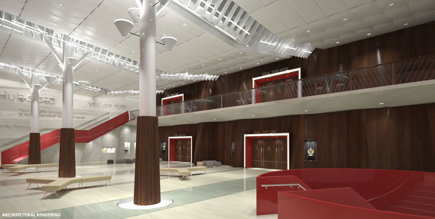 There was also the momentous announcement of the future L. Ron Hubbard Hall in Clearwater, a magnificent auditorium designed to seat thousands with convention and banquet conversion capability, complemented by a beautifully-appointed L. Ron Hubbard Park. The sleek digital design concept for the project presented to the gathered birthday crowd a facility set to span a full city block in Downtown Clearwater.