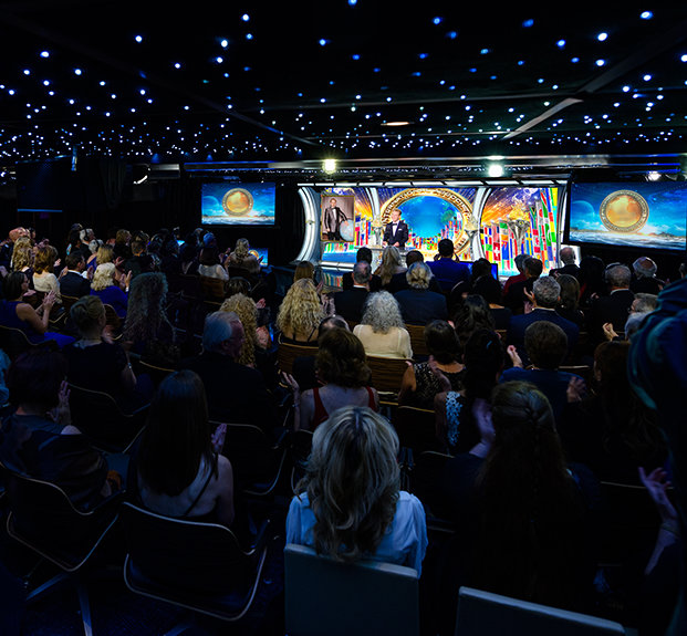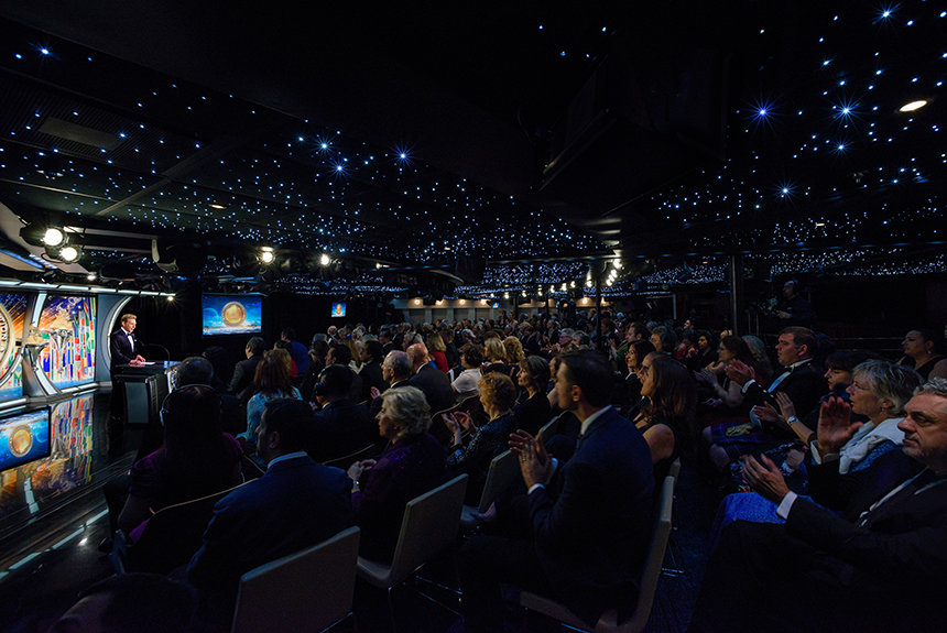 Those aboard for the Maiden Voyage attended a formal event honoring the International Association of Scientologists (IAS), whose mission is to further the social betterment efforts of the religion, support and protect the aims of the religion, and to expand the Church. Among the IAS-supported groups highlighted in the event were: