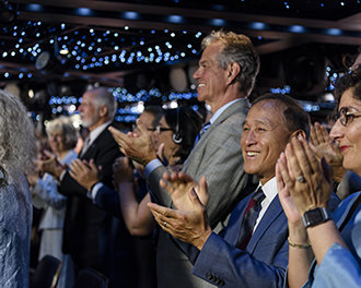 “Since last we met, our solar system of Churches now includes: Budapest, Hungary; Harlem, New York; San Diego, California; and, the rim of our terrestrial world in Auckland, New Zealand,” he said, before moving on to detail the most recent Church grand openings in the San Fernando Valley, California; Miami, Florida; and Copenhagen, Denmark.